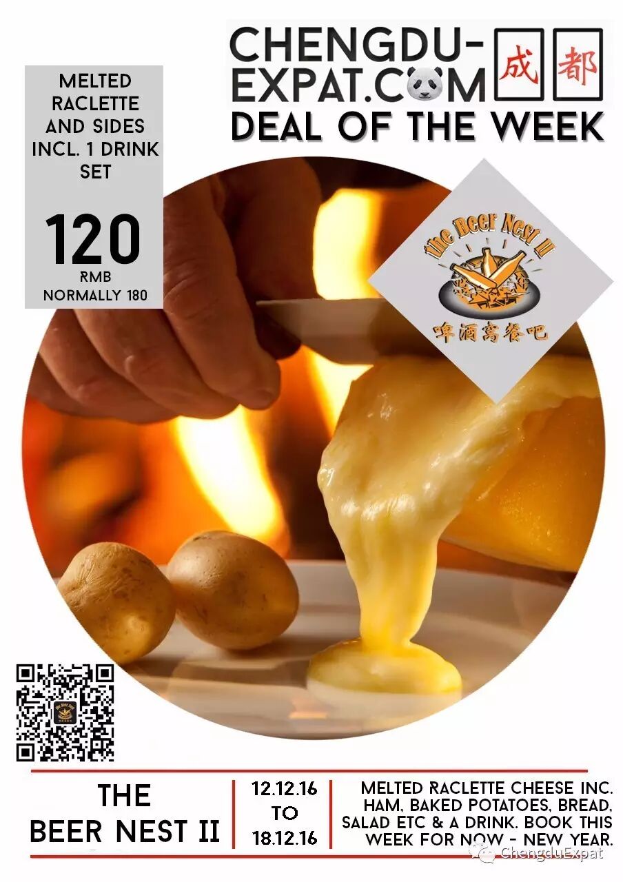 Raclette is a Swiss hard cheese that is traditionally heated and melted onto your plate – and served with range of salad and sides. The Beer Nest II is offering this artisan experience to celebrate the festive season with your friends (min. 4 person). If you book this week you will pay only 120RMB per person and can reserve any time until New Years Eve. This is normally 180RMB