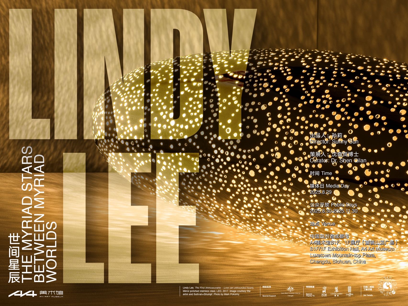 This exhibition marks Lindy Lee’s first solo show in Asia. Spanning a1,500-square-meter venue, it features 50 significant works, including paintings, sculptures, and large-scale installations, offering a retrospective of her forty-year artistic journey. The display invites visitors to experience a unique, profound, and intimate connection with the universe.