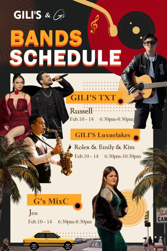 Feb. 10-14: Live Music @GILI’S and G’s