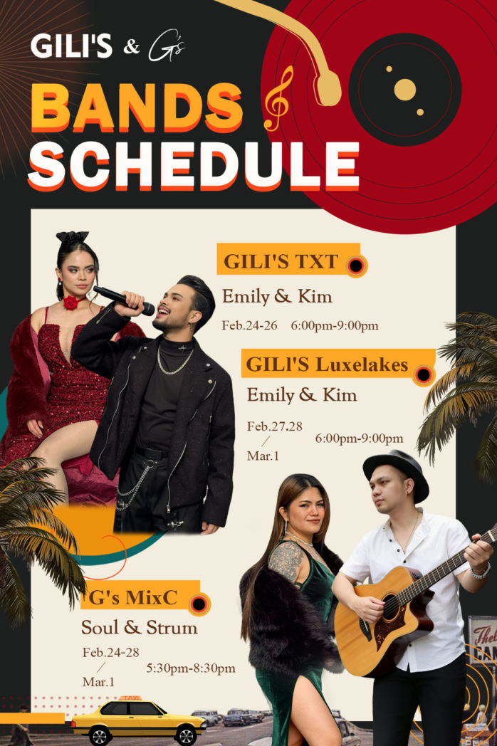 Check out this week’s live music schedule at GlLI’S Restaurants and Bars, a small chain of friendly European style bistros!