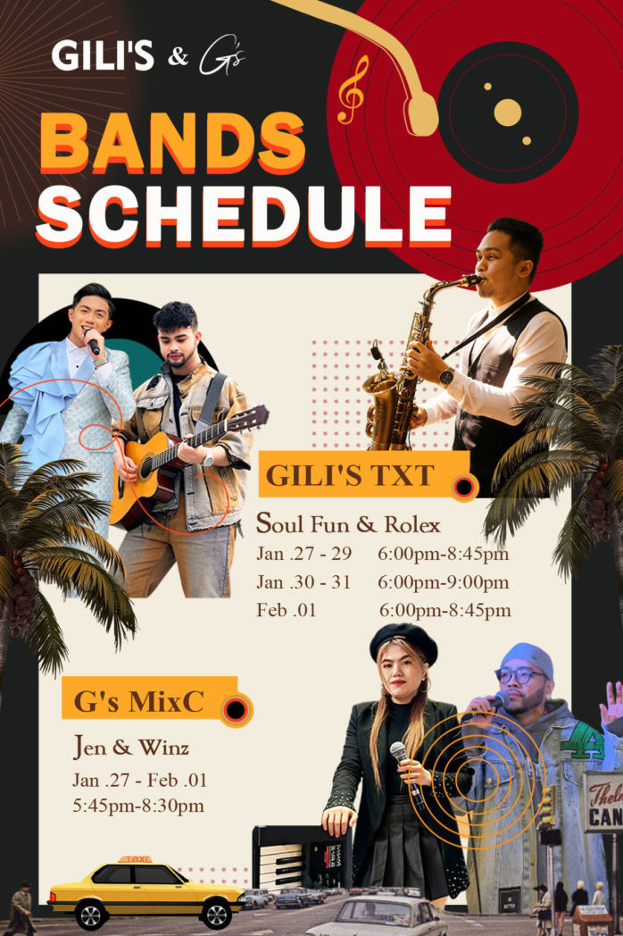 Check out this week’s live music schedule at GlLI’S Restaurants and Bars, a small chain of friendly European style bistros!