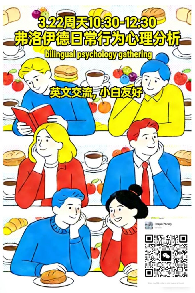 We will read selected passages from this classic work of psychology, alternating between Chinese and English.Between the lines, we will revisit our daily habits, mistakes, and distractions, and recognize the inner signals we often ignore.We do not aim to become flawless machines,but to become more awake, self-aware, and thoughtful versions of ourselves.By understanding why we are who we are,we break free from unconscious repetition and stop being led by habit and impulse.