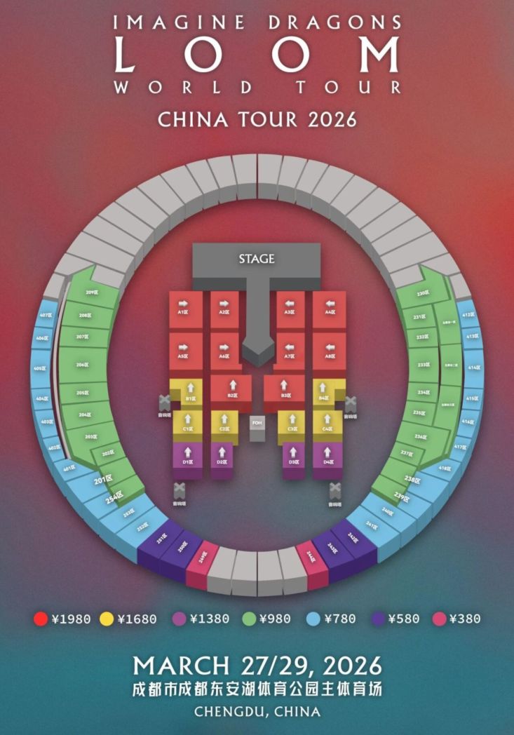 The concert seem to work with a lottery system: you ‘pre-reserve’ with a few clicks via the Damai 大麦 ticket platform (click here for the Imagine Dragons Chengdu gigs website link, or use their Mini-Program), and cross your fingers you’ll be one of the lucky few ones to actually get the tickets. T