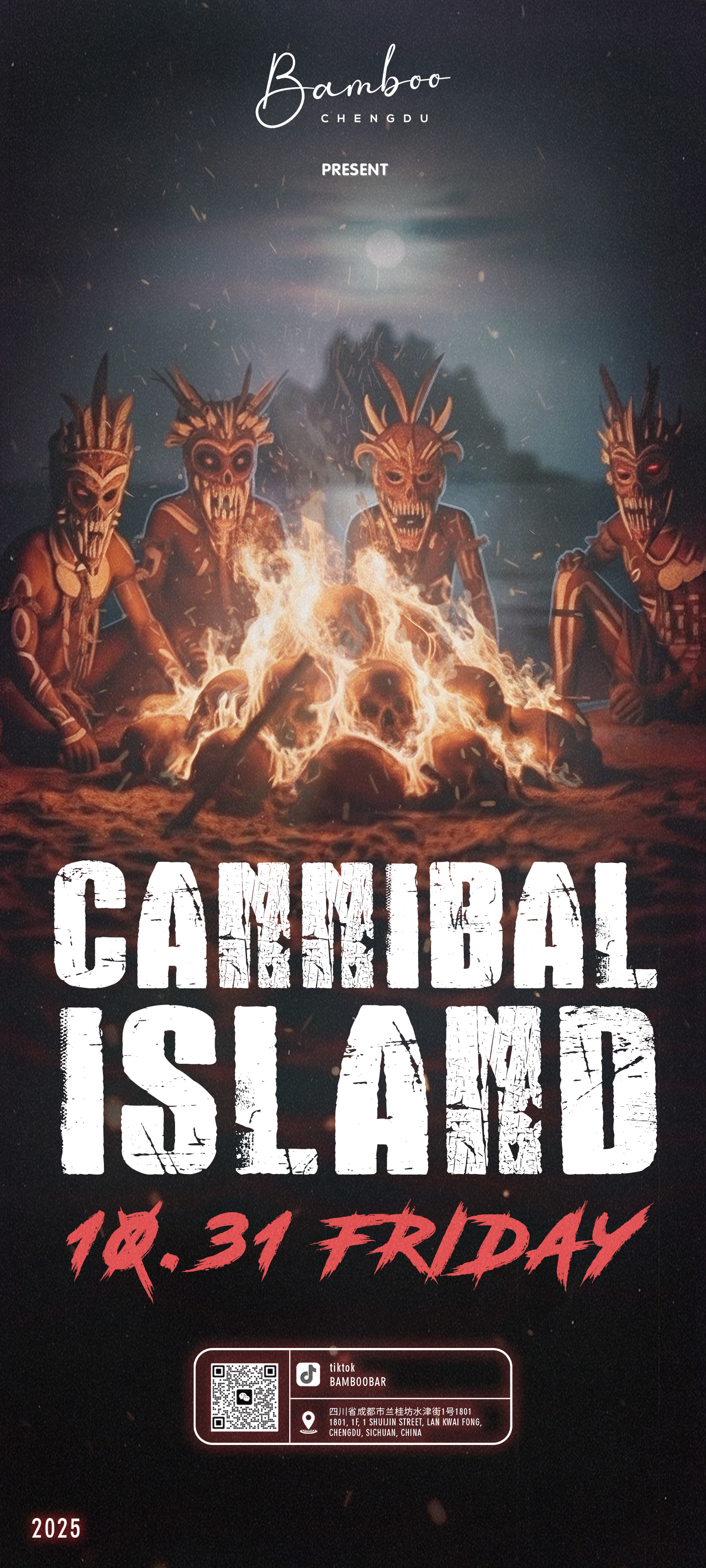 ProfileHalloween Party | CANNIBAL ISLAND🔥 HALLOWEEN NIGHT 🔥Step into the wildest ritual of the year — CANNIBAL ISLANDMasks, fire, and madness await.📅 Friday, Oct 31, 8pm – 6am@Bamboo ChengduBamboo Tropical Escape1/F, Block 18, Chengdu Lan Kwai Fong, 1 Shuijin St水津街1号成都兰桂坊18栋1楼Please follow and like us: Photos Chengdu-Expat-logos-panda_majhong.jpg Reviews Leave a Review Cancel reply Your email address will not be published.Review text Select a rating Overall Drop files here OR Allowed file types: .jpg, .jpe, .jpeg, .gif, .png, .bmp, .ico (You can upload 10 files) Please drag & drop the files to rearrange the order Set Image Texts × Drop Here NameEmailWebsiteSign me up for the newsletter! Δ This site uses Akismet to reduce spam. Learn how your comment data is processed. PlaceBamboo Tropical EscapeMore Events Favorite From MP and Nightlife Oct. 31 – Nov. 1: Día De Los Muertos | Halloween Party 锦江区大川巷9号附8号 Chengdu Sichuan 0.1 km No Reviews October 31, 2025, 7:00 pm-November 2, 2025, 6:01 am Favorite From MP and Nightlife Oct. 31: Halloween Party at The Leg & Whistle 武侯区科华街1号附19号 Chengdu City Sichuan 2.42 km No Reviews October 31, 2025, 8:00 pm-November 1, 2025, 6:01 am Favorite From MP and Nightlife Oct. 31: JC Tango Halloween Dance Party 锦江区宏济上路56号潮玩街区 Chengdu City Sichuan 0.86 km No Reviews October 31, 2025, 9:00 pm-11:59 pm Previous Next