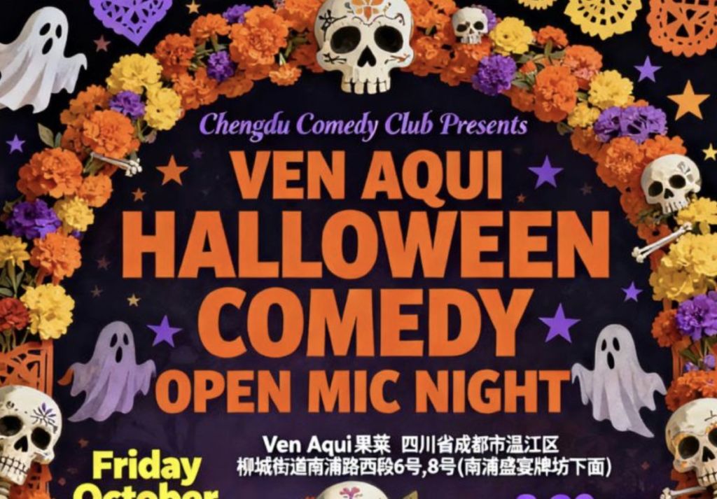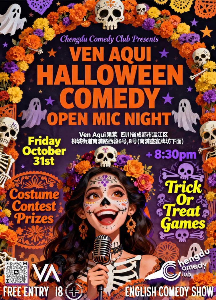 This Halloween,trade screams for laughs! Chengdu Comedy Club is throwing a spooktacular Comedy Open Mic Night at the amazing Ven Aqui Fusion Kitchen Bistro!