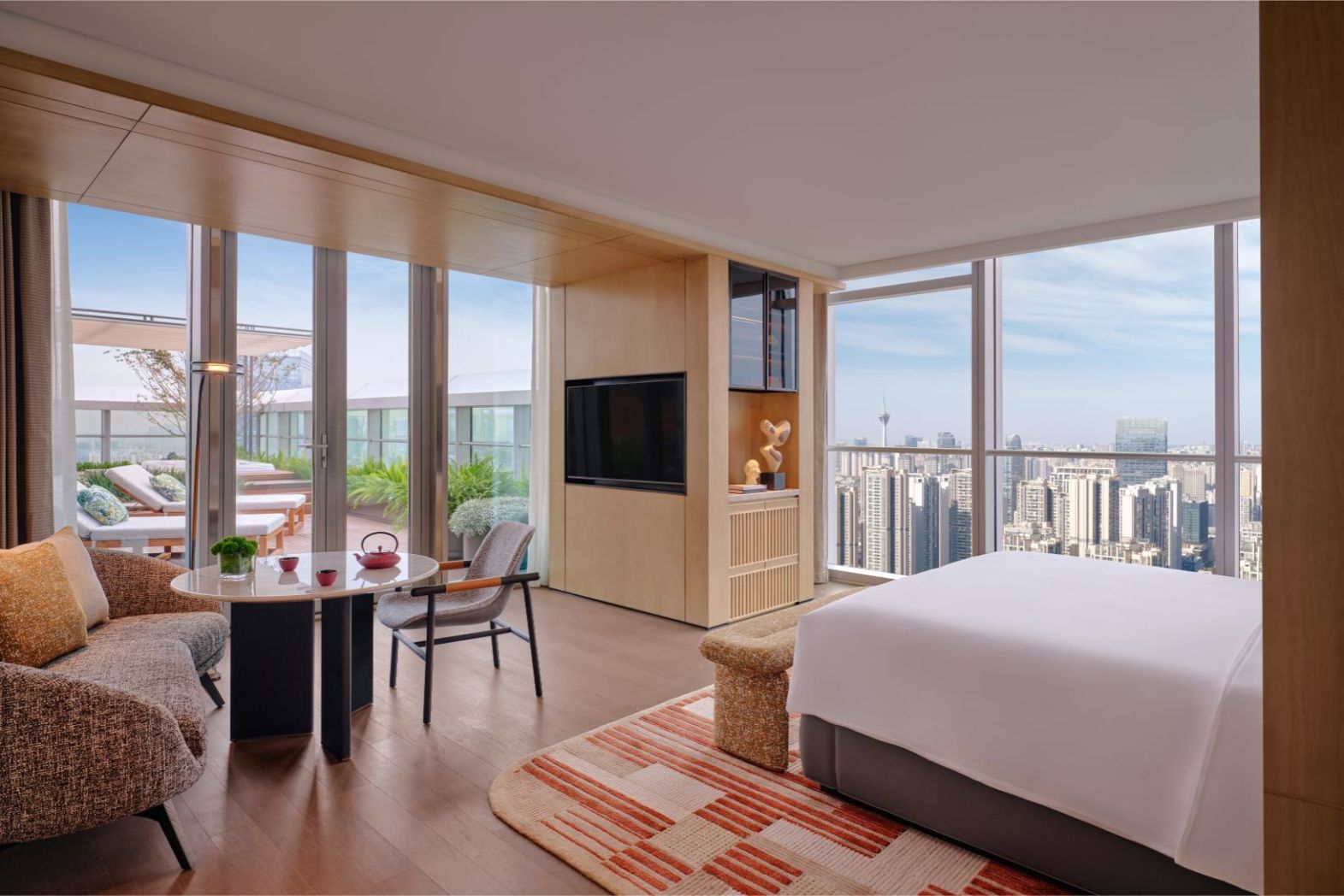 • Rooms: Boasting 258 guestrooms and suites, all positioned on floors 36 and above to deliver unobstructed panoramic views of Chengdu’s sprawling skyline, from iconic landmarks to the distant greenery of surrounding parks.
